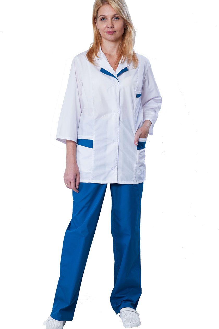 Блузка с центральной бортовой застежкой на пуговицы. Полочки с рельефами от линии плеча, с одним нагрудным и двумя нижними накладными карманами. Спинка с хлястиком. Рукава втачные одношовные. Воротник отложной, с лацканами с декоративными деталями. На карманах декоративные детали.