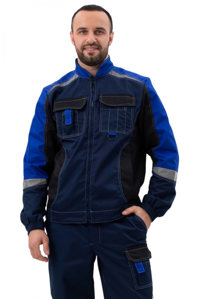 ➠ Куртка: силуэт прямой, пояс притачной, застежка на молнию, воротник стойка. Накладные карманы комбинированные с малыми накладными карманами с разделителями. Прорезные карманы на нижней части полочки. По шву притачивания кокетки вверху и по рукавам фигурные вставки СОП.