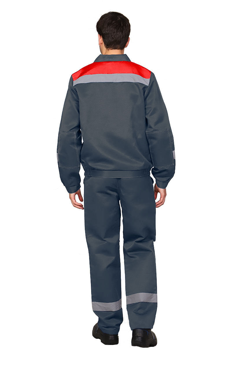 ➠ Куртка серая с красной кокеткой укороченная, пояс притачной. Центральная застежка на петли и пуговицы. Воротник отложной. Накладной карман на груди с отделением для ручки. Нижние накладные карманы с наклонным входом.