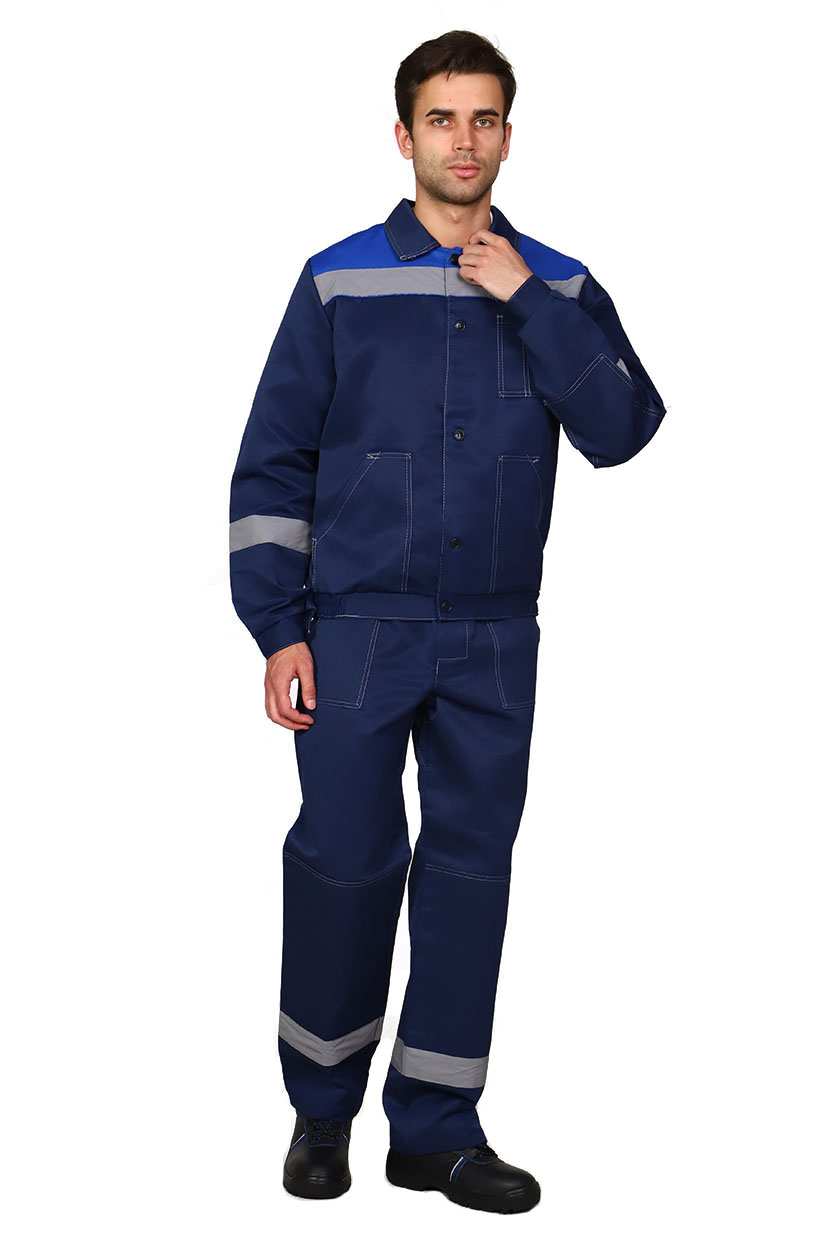 ➠ Куртка укороченная, с притачным поясом. Центральная бортовая застежка на петли и пуговицы. Воротник отложной. Один нагрудный накладной карман с отделением для ручки. Два нижних накладных кармана с наклонным входом. Рукава с манжетами, застегивающимися на пуговицу, с налокотниками. Притачной пояс с участками эластичной тесьмы по бокам. По шву притачивания кокетки и по рукавам СОП 50 мм.